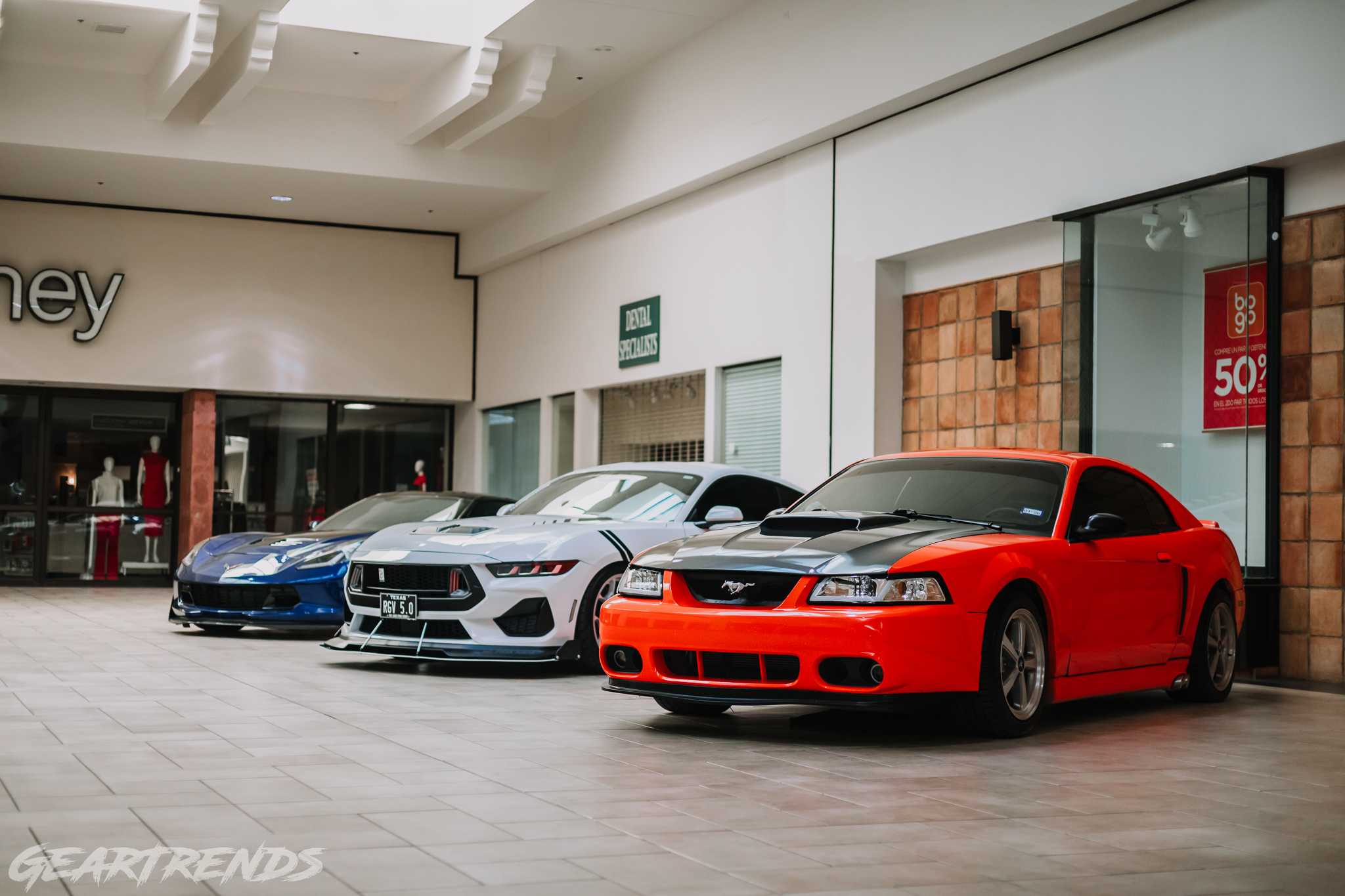 Due to the nature of my day-to-day job, I was also a bit more involved than just doing media. The shop I work at was a sponsor for the event, so we set up a small store and had our good friend Thomas bring out his recently rebuilt 3V Mustang to be a part of the shops display. The “roll-in” to pack the mall with registered cars was the evening before – so I made my way out and wasn’t sure what to expect. I arrived early (shocker) and started checking out a few of the cars – maybe these people also have the same sort of anxiety I do about being late somewhere…maybe. Being at Valle Vista Mall brought back a lot of memories from the early 2000’s. Back then my dad was building and designing custom homes out in the Harlingen area. And because it was a different time back then, my brothers and I would get dropped off at the arcade for a while. The same entrance I would take, cut a right, and head straight towards a Ferrari racing game was now the entrance these cars for the show were about to take.