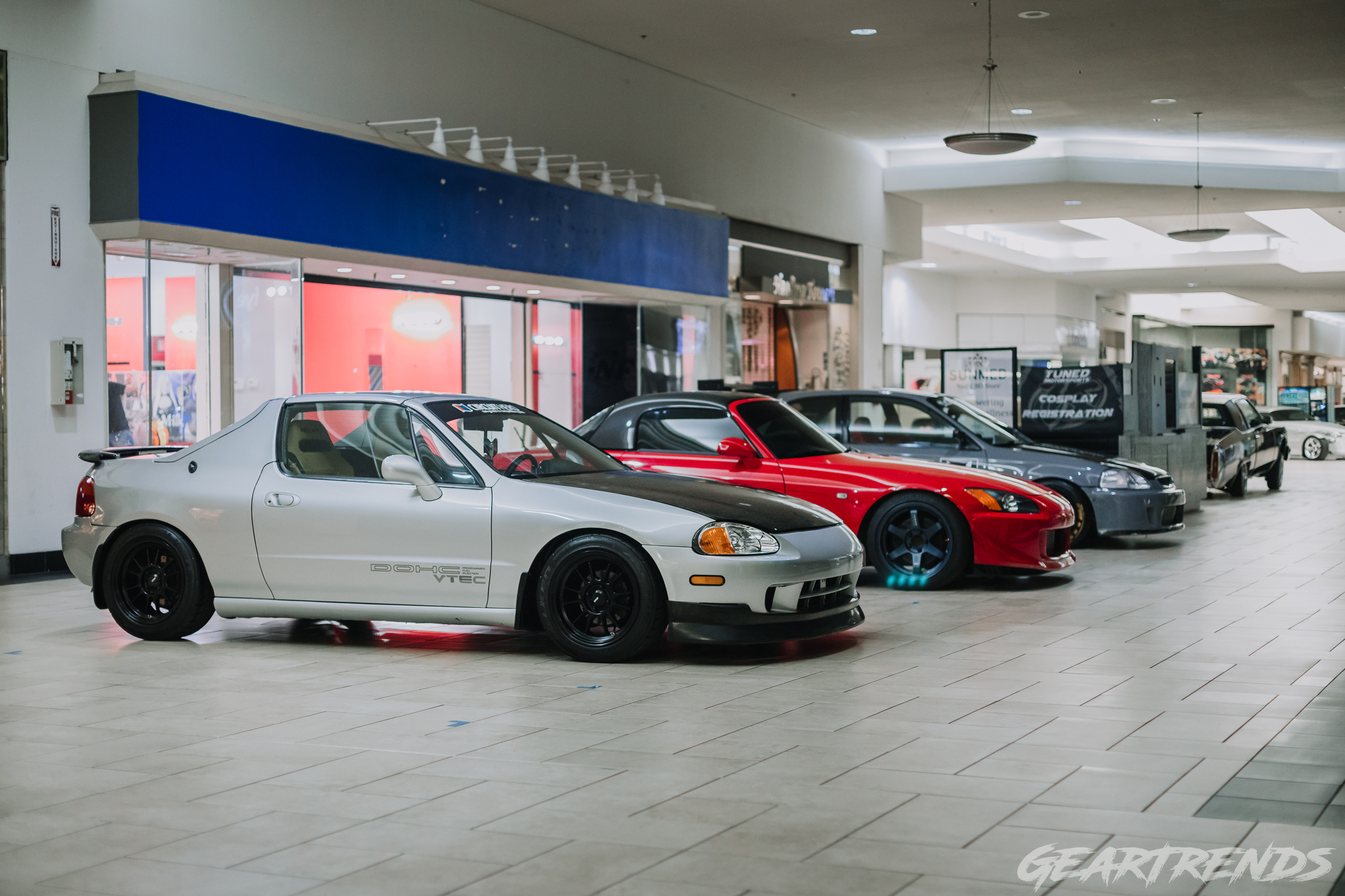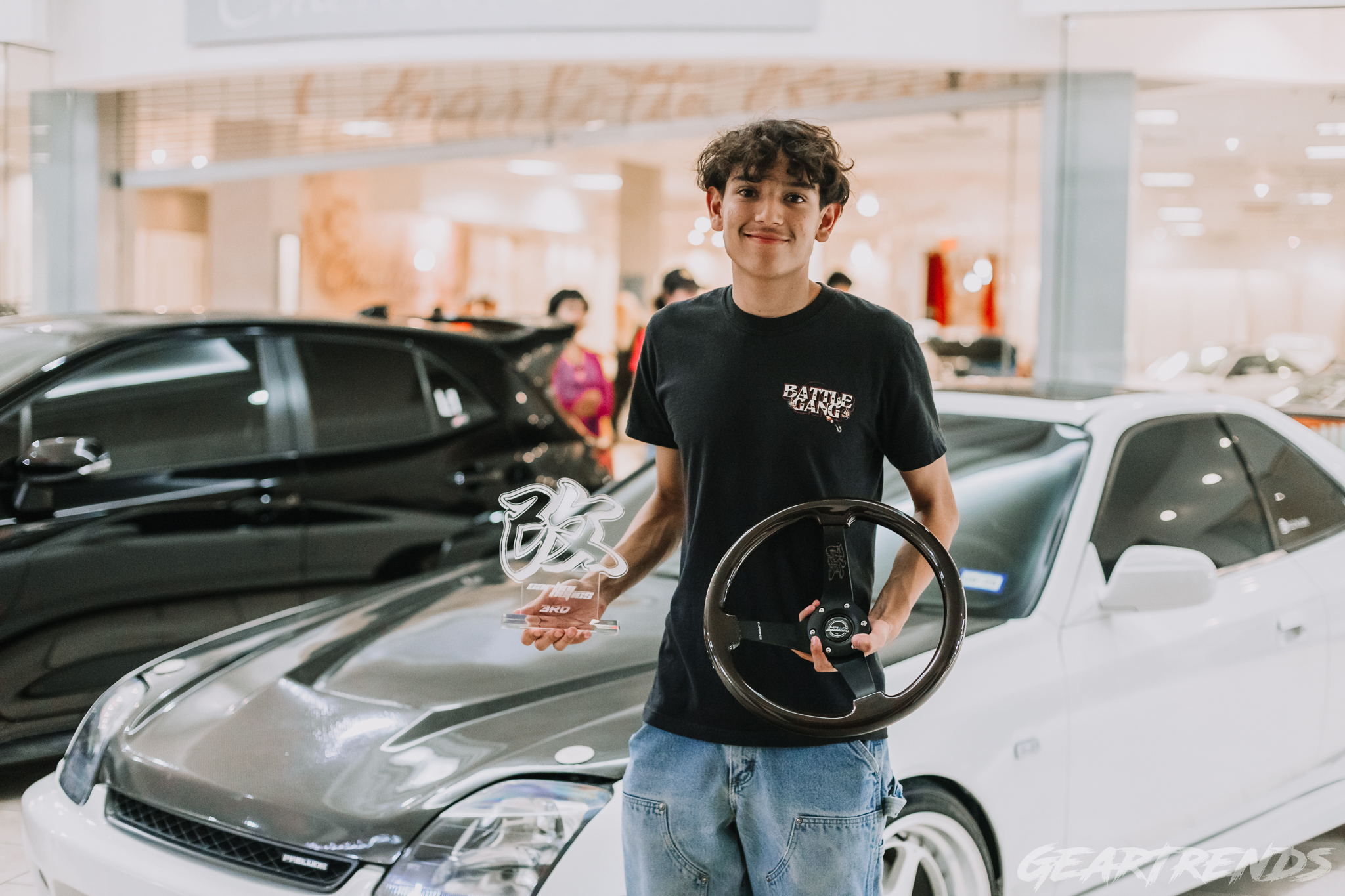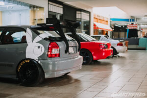 One of the guys from our friends EuroFanatics took home a trophy for his E36, along with Nate with his white 5th gen Prelude. I met Nate during load in, one of the early birds who was hanging out in the parking lot before things got moving. I’ve owned a lot of Honda’s over the years, but my 4th Gen Prelude was one of my favorites – so I have a soft spot for the chassis. Thomas took home a prize for best race car, which wasn’t a shocker when it was the only car that had to get pushed in and out due to safety concerns from the glass possibly shattering inside the mall. And finally guys at BoostedJunkies took such heavy hitters that it was impossible to choose one – so the entire crew took home 1st. But how did this sort of show not only happen once, but twice now? Seeing Nathen and his team carefully manage everything from load in, and running around all day making sure the show went off as smooth as could be given a few setback, it was clear I wasn’t going to get any time to find out about Tuned Motorsports- and that was totally fine.