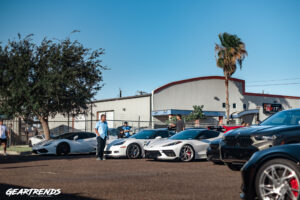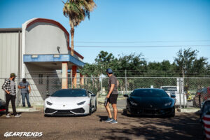 Call it social anxiety, call it being extremely punctual, whatever the case – I arrived to the morning meet 15 min before the start time listed on the flyer, 8am. By the time I pulled up my attention was caught by a pair of Lamborghinis I’m already familiar with down here, clearly a sign of the type of meet this would turn out to be. I was greeted by the owner of Black Diamond McAllen, the host of the event, and let me know where to park as some of the parking area was already reserved. I definitely appreciate the planning so moved over to the parking area off to the side, grabbed my gear, and walked over to the main entrance where a local coffee truck company I’ve heard of was setting up. I dont go big for breakfast but they did have a great spread of Donuts from Don Donuts, but I kept eyeing that portable coffee setup like a hawk.